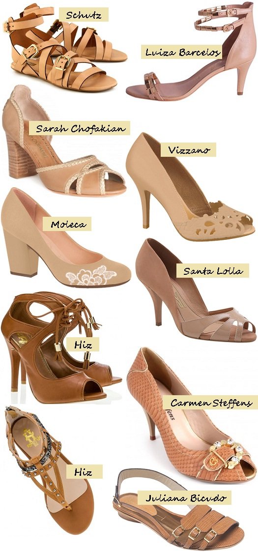 O nude e os tons terrosos (bege, marrom) prometem ser as cores da moda primavera verão 2014. E, aparece em vários estilos: elegante, casual, festivo, básico… Sapatos, sandálias, rasteiras, sapatilhas, anabelas… Há modelos de sapatos para todos os gostos! Nude tom de pele, nude rosado, nude bege e nude com outras cores. O nude com várias possibilidades… Ou, quem sabe arriscar na naturalidade de qualquer tom terroso? Todas essas cores ficam ótimas com cores vibrantes e cores neutras. Está explicado porque são ótimas alternativas para o verão! É a época mais amada para usar looks vibrantes, iluminados…